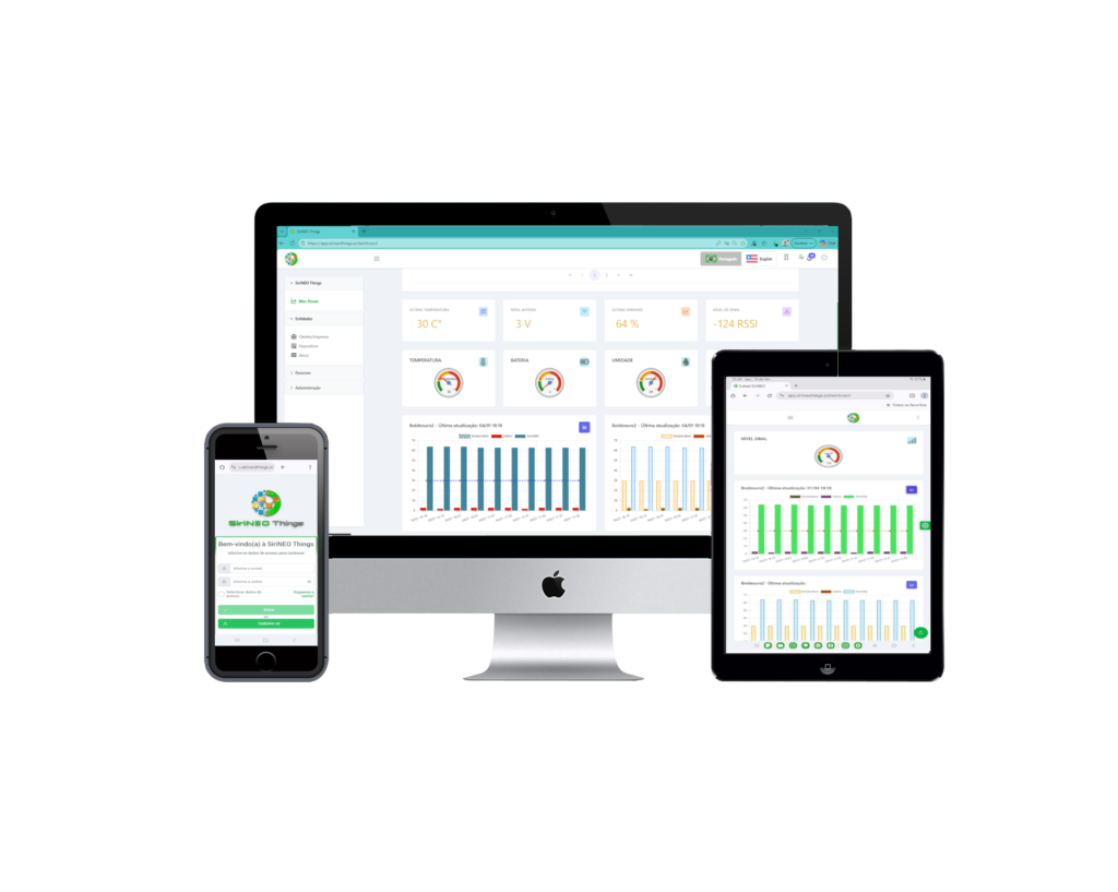 As Plataformas Web IoT são interfaces onde os dados coletados em campo são recebidos, processados e visualizados. A SiriNEO Technologies, em conjunto com a ThingsBOT IoT, desenvolve sua própria Plataforma Web IoT de integração, permitindo operação unificada de dispositivos e sensores.